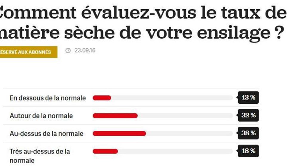 N.B. : Les résultats d’un sondage en ligne ne sont qu’indicatifs dans la mesure où les internautes qui y participent ne constituent pas forcément un échantillon représentatif des exploitations agricoles françaises.