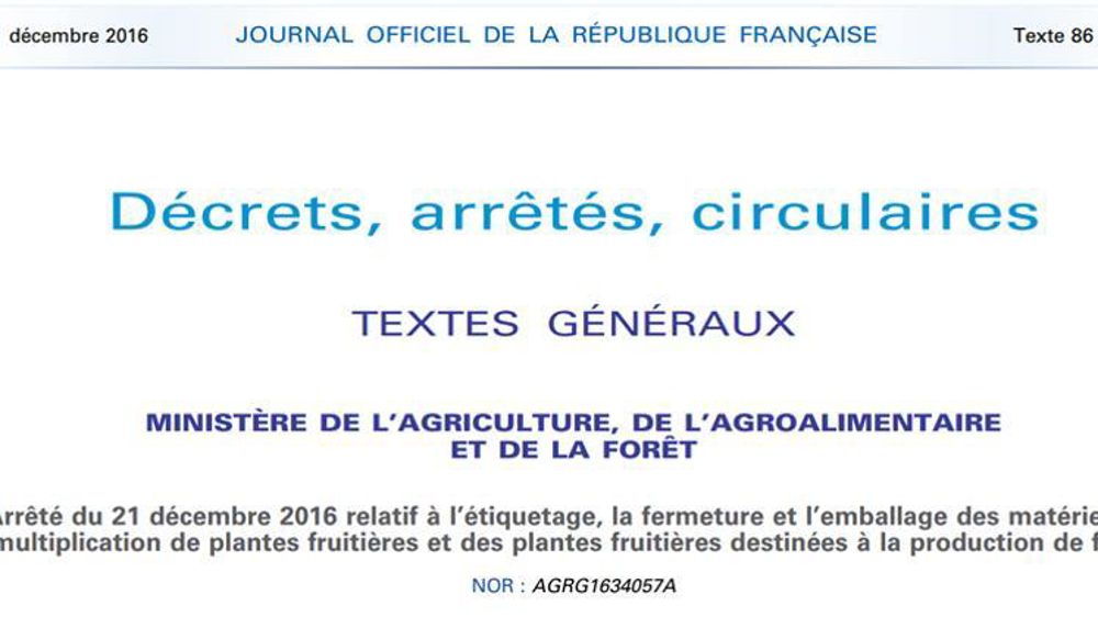 L’étiquette pour les matériels initiaux, de base ou certifiés doit être « apposée sur les matériels initiaux par les organismes officiels responsables désignés selon les espèces et genres concernés, et, pour les matériels de base ou certifiés, par le fournisseur, sous la responsabilité et le contrôle des organismes précités selon un modèle qu’ils établissent », indique l’arrêté.