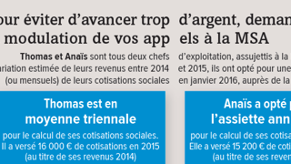 - anticiper la prise en compte d’une variation de revenus professionnels dans l’assiette de cotisations sociales, sur la base d’une estimation réalisée par l’exploitant,