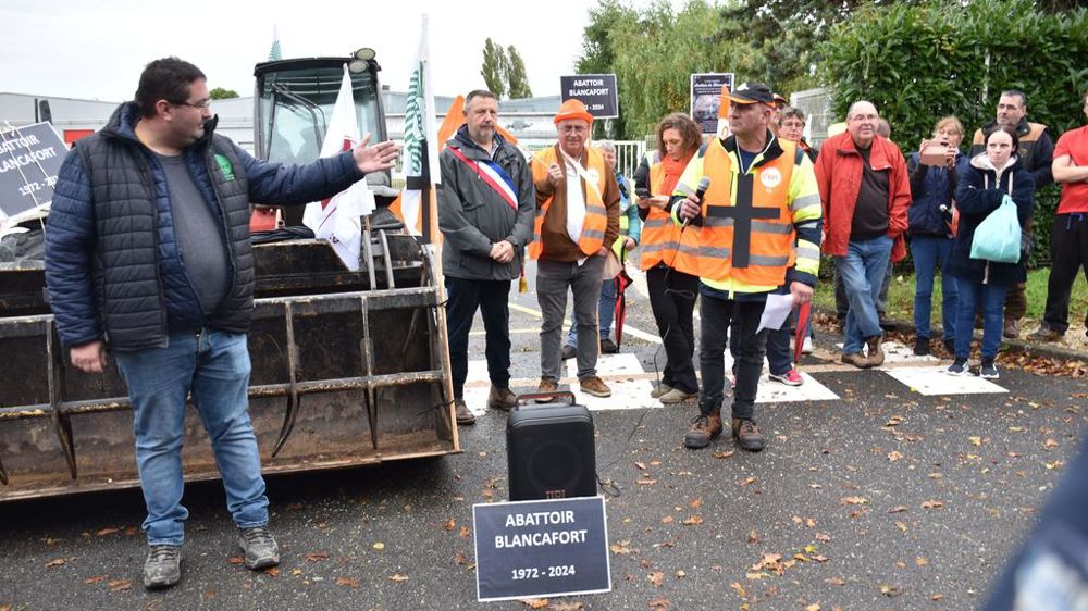 Lors de la manifestation, des pancartes affichent des plaques funéraires, rendant hommage à cette usine employant 120 personnes depuis 1972. Dans les esprits, c’est l’incompréhension. Dominique Désiré, éleveur de volailles à Ids-Saint-Roch (2 000 m² de bâtiment avicole), est venu faire entendre son mécontentement. « Je vais avoir un nouveau lot de dindes au début de novembre. Ils en ont besoin ! Ce n’est pas normal que l’abattoir ferme. C’est de la mauvaise gestion. Maintenant, mes dindes vont faire 150 km de plus pour être abattues à Volabray, dans le nord du Loir-et-Cher. Et le bien-être animal alors ? »