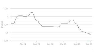 Le prix de base observé au Marché du porc français ce jeudi 8 janvier 2026 perd 0,1 centime par rapp...