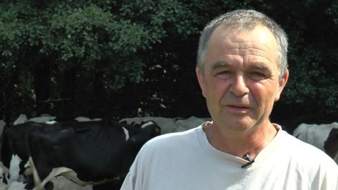 Olivier, éleveur laitier en Dordogne, a réalisé une vidéo avec l’aide de son voisin professionnel pour trouver un repreneur à son exploitation de 47 hectares. © O. Madelaine