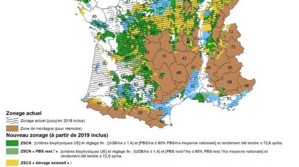 (2) zones défavorisées soumises à contraintes spécifiques, dessinées sur la base de critères définis par l’État membre (à la différence des ZSCN, zones soumises à contraintes naturelles, dessinées sur la base de critères biophysiques définis par l’Europe).