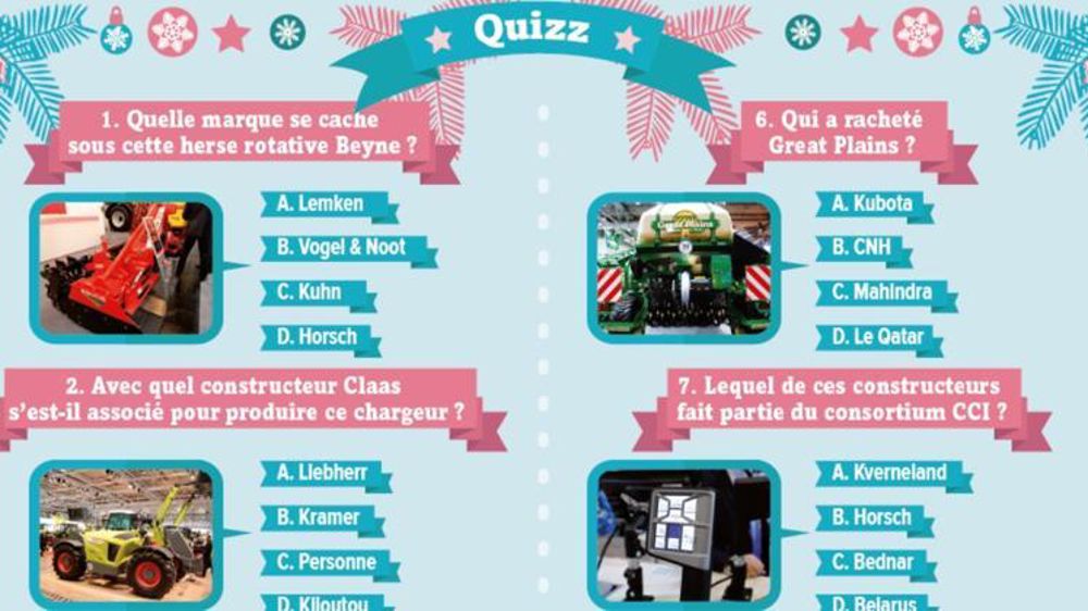 - Réponse 6 : A. Le groupe Kubota s’est offert l’américain Great Plains. Lire l’article.