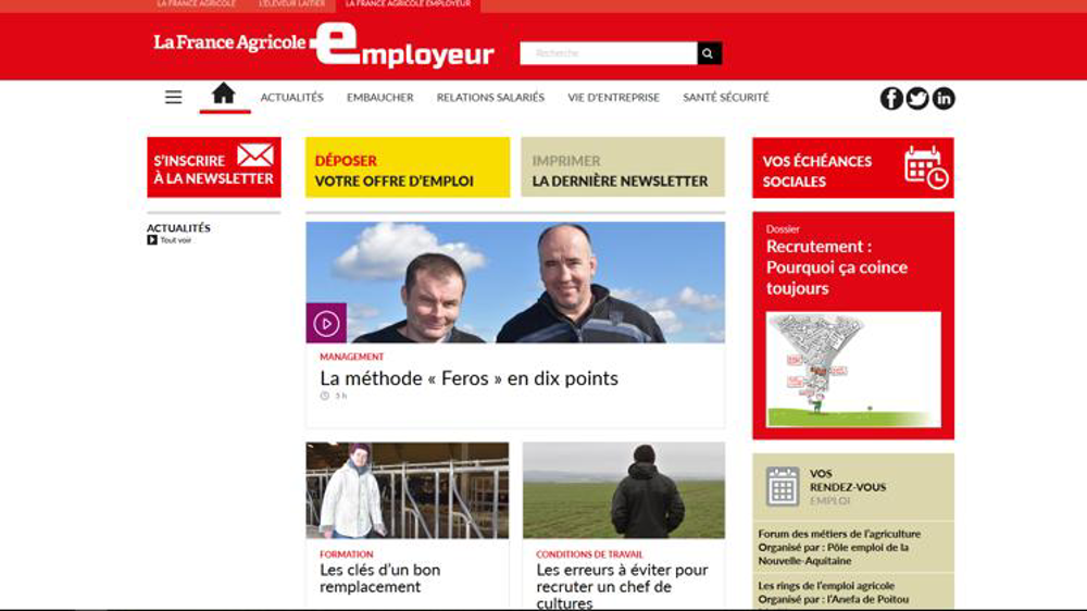 L’objectif de ce site est de répondre aux questions et aux préoccupations des employeurs agricoles : il couvre l’actualité juridique liée à l’emploi. Et des exploitants y partagent leurs expériences en matière de recrutement, d’organisation des tâches et des entretiens, de motivation de leurs salariés, de prévention des risques, et de réduction des coûts pour ce poste souvent très élevés.
