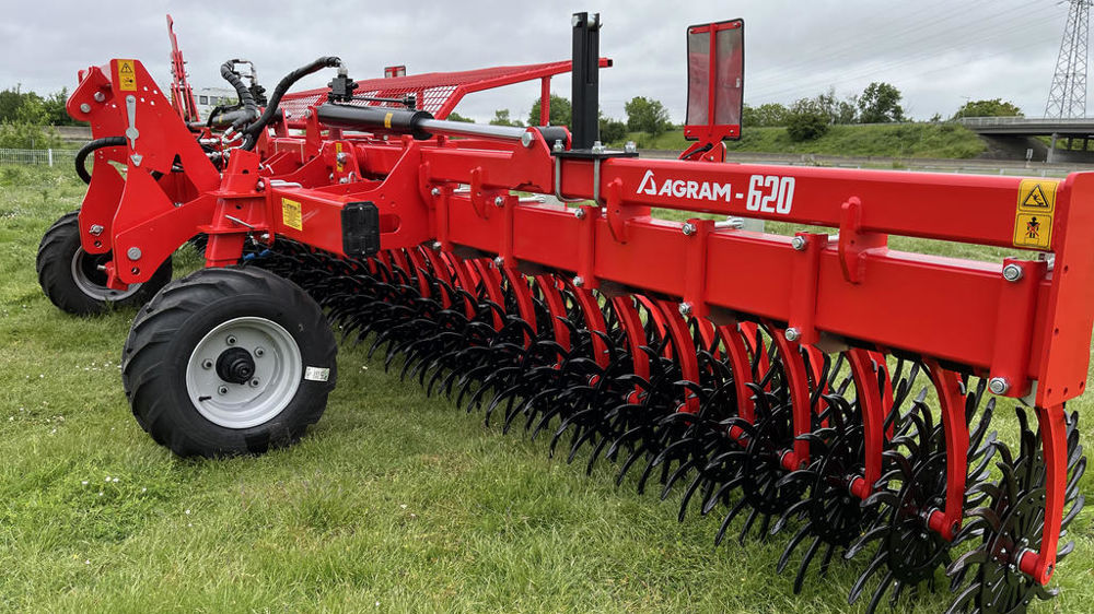 Agram étoffe son catalogue d’outils de désherbage mécanique avec la houe rotative Rota Clean 620 HR. Ce modèle est proposé uniquement en largeur de travail de 6,20 m. Une version de 9,3 m est également en cours de développement. Agram annonce une vitesse de travail de 15 à 22 km/h. La houe est équipée de roues étoilées de type Yetter possèdent un diamètre de 540 mm. Sur la Rota Clean, les étoiles possèdent leur propre bras indépendant et sont réparties sur une double rangée.