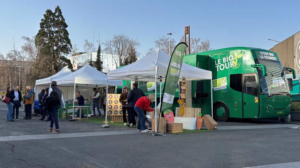 Armée de son bus itinérant estampillé « C’est bio la France », l’Agence bio proposait aux visiteurs la découverte de l’agriculture biologique au travers d’ateliers culinaires. Une configuration représentant deux fois moins de budget et quasi deux fois plus de visibilité, se félicite Bruno Martel.