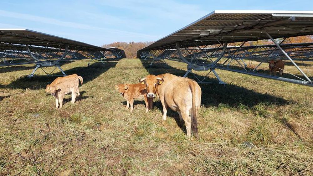 Après une première expérimentation concluante en 2020 sur une centrale photovoltaïque fixe déjà en activité depuis plusieurs années, Reden et la chambre d’agriculture du Lot-et-Garonne ont voulu renouveler cette expérience grandeur nature. Entre novembre 2022 et mars 2023, dix vaches de race Aubrac accompagnées de leurs veaux ainsi qu’un taureau ont pris place sur une parcelle de 15,5 hectares équipée de panneaux mobiles montés sur des trackers adaptés à un axe et située à Moncrabeau (Lot-et-Garonne). Le but ? Étudier le comportement des animaux en présence de l’installation agrivoltaïque et mesurer les bénéfices pour l’activité d’élevage.