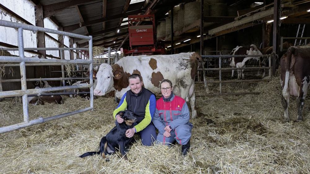 Propriétaire de deux sites d’exploitations distants de 5 km, le Gaec Delavelle a fait un pari audacieux. Tous les ans, à l’arrivée de la belle saison, les exploitants scindent en deux troupeaux leurs 80 vaches montbéliardes et simmentals à la traite. Tandis qu’un troupeau reste sur les 45 hectares (ha) de l’exploitation familiale historique, l’autre s’installe sur 50 ha de pâtures rachetées en deux fois dans les années 2000. Guillaume Delavelle, installé depuis le 1er février 2025 avec sa compagne Morgane Louvet, perpétue l’initiative de ses parents.