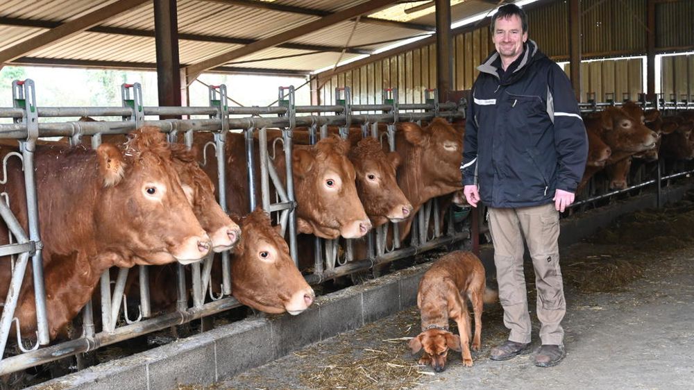 Aujourd’hui, son troupeau compte 38 vaches allaitantes et leurs suites, soit 110 bovins au total. Ils sont élevés sur 105 hectares de prairies, complétés de cinq hectares d’un mélange de triticale, avoine, pois et vesce. « Ce chargement constitue une assurance face aux aléas climatiques tels que la sécheresse ou les inondations », précise l’éleveur, qui souligne aussi que 100 % du carbone émis par son élevage est stocké. Les animaux sont conduits en quatre lots séparés : femelles suitées, réformes et génisses, puis les femelles et mâles de plus d’un an. Issus de vêlages groupés du 10 février à la fin de mars, les bœufs sont vendus à 30 mois et les génisses à un peu plus de 36 mois. Vêlant à trois ans, les vaches sont réformées après quatre veaux au maximum. Tous sont commercialisés via Unebio.