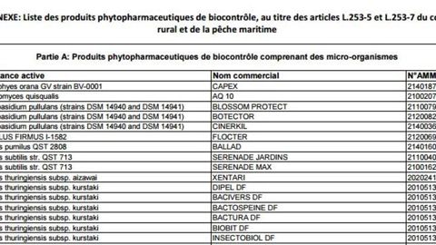 Les produits phytopharmaceutiques de biocontrôle figurant sur cette liste sont dispensés de plusieurs restrictions spécifiques en matière de sécurité et d’une réduction du taux de la taxe sur la vente (...)