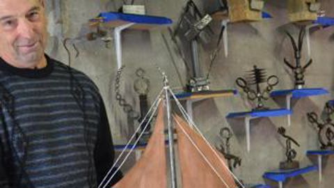 Dans son atelier, à Saint-Jean-Saint-Germain, au sud de Loches, Pierre Monteil fabrique des sculptures en métal, à partir de pièces agricoles.