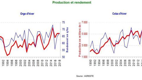 Selon ses dernières estimations au 1er juin, le service de la statistique du ministère de l’Agriculture table sur des rendements en baisse pour les colzas, en hausse pour les orges d’hiver.