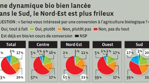 Dans l’Hexagone, la moitié des agriculteurs serait totalement contre l’idée de convertir leur exploitation au bio. Un chiffre qui tombe à 39 % dans le Sud, et grimpe à 65 % dans le Nord.