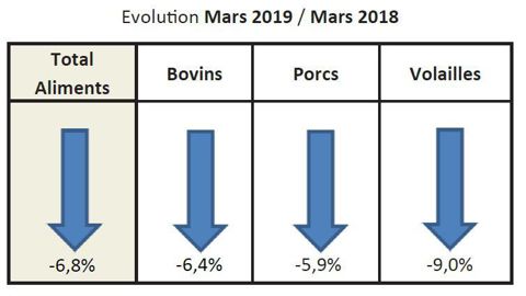 En mars 2019, la production nationale d’aliments composés régresse de 6,8 % avec seulement 1,6 million de tonnes fabriquées, ce mois comptant un jour ouvré de moins qu’en mars 2018, indiquent mercredi (...)