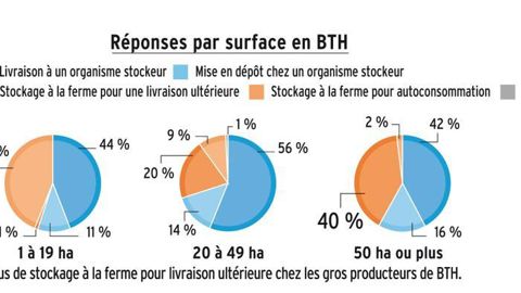 49 % des agriculteurs produisant du blé tendre, envisagent de livrer l’essentiel de leur récolte à un organisme stockeur. Cette proportion est relativement stable par rapport à ces dernières années.