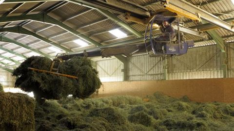Le séchage en grange sécurise la qualité du foin de luzerne. Pour économiser l’énergie, l’air chaud utilisé est récupéré sous le toit de la bergerie. © F. Ehrhard