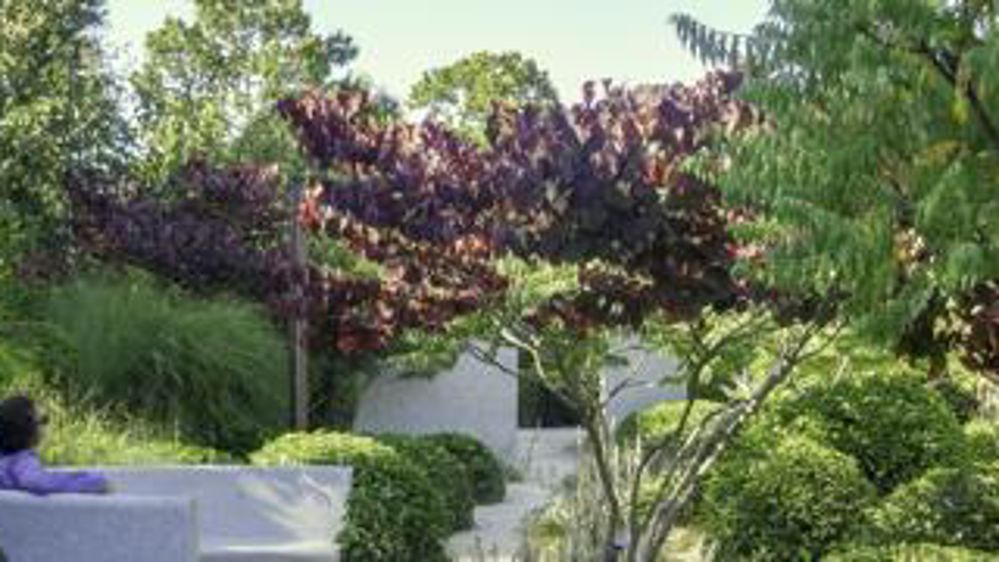 Dans un amphithéâtre de verdure, des étangs à nénuphars évoquent des tableaux impressionnistes. Une passerelle court le long d’une prairie humide et des arbustes taillés en boules symbolisent des planètes. Au fil de la promenade, des espaces clos se laissent découvrir derrière une porte sculpturale ou dans une alcôve végétale.