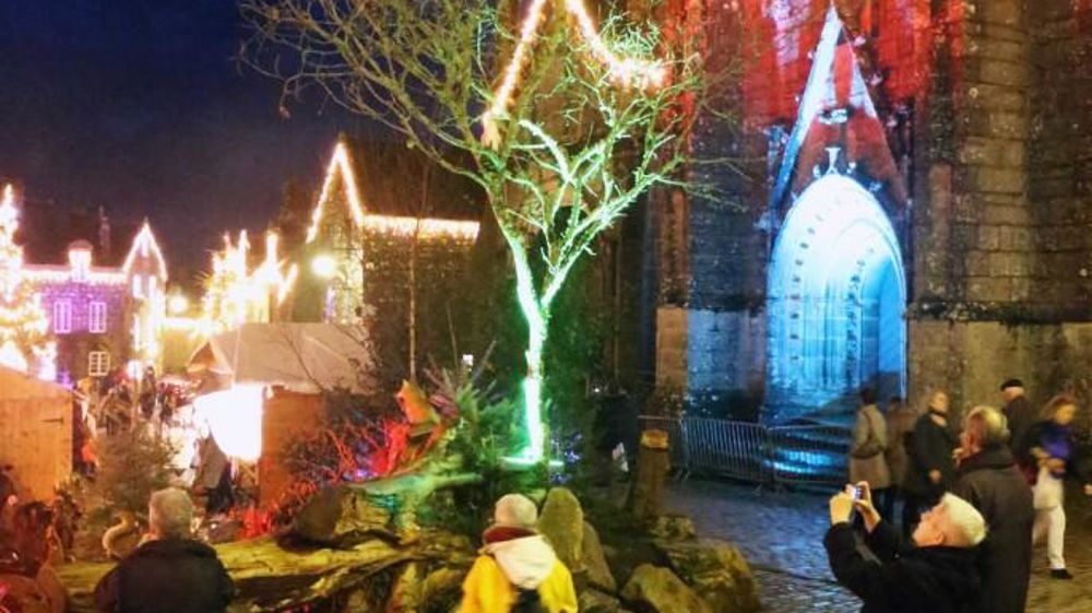 L’artiste breton Denez Prigent ouvrira, le 9 décembre à 18 heures, sur le parvis de l’église, le bal des illuminations de Locronan. Celui qui mêle avec brio chants traditionnels bretons et musique électronique devrait faire place comble ! Pour la quatrième année, la jolie cité médiévale s’habille tous les soirs de lumière, jusqu’au 7 janvier. Les façades des belles demeures en granit s’ornent de guirlandes lumineuses. Les visiteurs, de plus en plus nombreux chaque année, déambulent dans les venelles et entrent, au gré de leurs envies, dans les échoppes des artisans à la recherche de cadeaux de Noël originaux. De doux effluves de crêpes s’échappent ici et là. Vingt-cinq chalets installés au fil des ruelles, ainsi qu’une belle exposition de crèches présentée au musée apportent un attrait supplémentaire. Une halte dans l’église dédiée à saint Ronan s’impose, pour découvrir la chaire ornée de médaillons illustrant la vie de cet irlandais du VIe siècle. La féerie de Locronan offre un moment de gaieté au cœur de l’hiver !