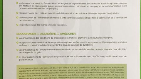 « Cette démarche implique tous les maillons de la filière de l’alimentation animale », des fournisseurs de matières premières aux consommateurs, en passant par les éleveurs, les fabricants d’aliments du bétail, les transformateurs de produits animaux et la grande distribution, précisent-ils.