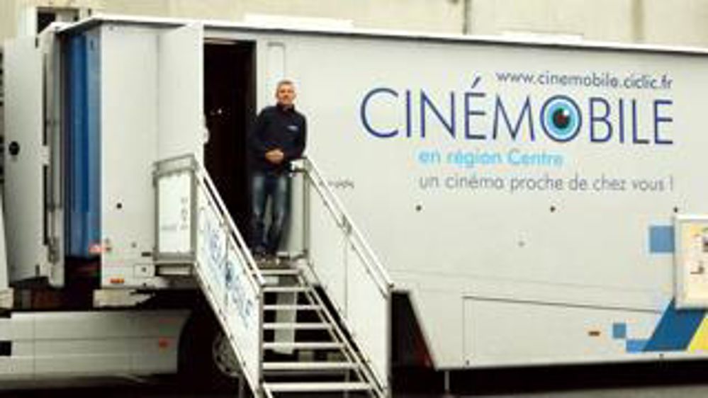 La région Centre propose ce service de projection depuis les années 1990. Le camion de 26 tonnes se déploie, afin d’offrir une salle de cinéma avec 80 fauteuils en velours rouge et grand écran. Baldemar Martins est le capitaine du Cinémobile, à la fois routier, régisseur et projectionniste. « Après avoir roulé, je me mets à la caisse pour accueillir les gens, raconte-t-il. Puis, je présente le film en quelques mots. L’ambiance est plus chaleureuse qu’en ville. Les spectateurs se donnent rendez-vous au cinéma, échangent après le film. »