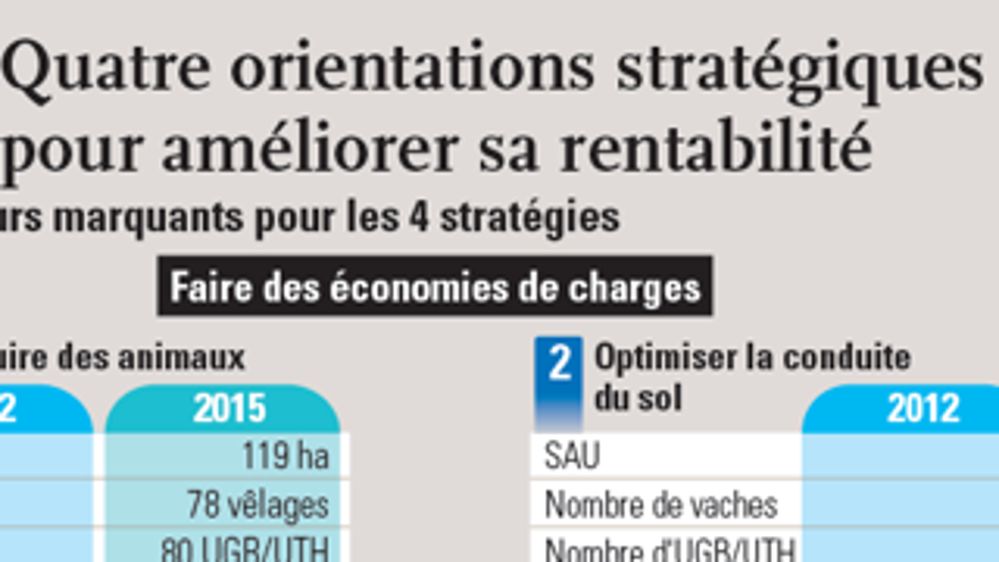 « Nous avons dégagé quatre trajectoires d’exploitations qui ont amélioré leur résultat courant/UMO en quatre ans », expose Nathalie Velay (voir notre infographie). Certaines fermes ont travaillé sur la productivité de la main-d’œuvre et augmenté fortement le nombre d’UGB sans majorer le coût du travail. D’autres élevages se sont tournés vers la recherche d’autonomie selon deux directions : réorienter la production sur des animaux plus légers permettant de diminuer le coût de production de plus de 200 €/UGB, ou améliorer leur autonomie alimentaire en augmentant la part de céréales à paille et en intensifiant la productivité de la surface fourragère. D’autres ont choisi de finir leurs animaux pour capter la valeur ajoutée de la filière.