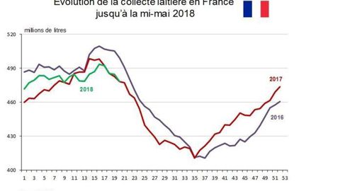 En France, « la courbe de collecte de 2018 est passée en dessous de celles de 2016 et de 2017 entre la deuxième quinzaine du mois de mars et la fin du mois d’avril », constate Benoît Rouyer (voir ci-dessous). L’économiste observe un pic de collecte « beaucoup moins prononcé » que les années précédentes. « Désormais, la collecte se situe dans sa phase de recul saisonnier et suit globalement le profil de l’année 2017 ».