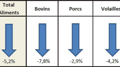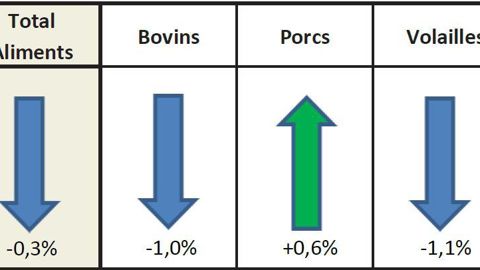 - La baisse atteint 1 % pour les bovins (–0,9 % pour les vaches laitières) ;