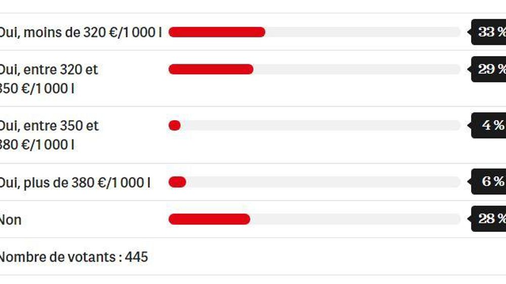 N.B. : Les résultats d’un sondage en ligne ne sont qu’indicatifs dans la mesure où les internautes qui y participent ne constituent pas forcément un échantillon représentatif des exploitations agricoles françaises.