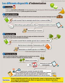 La demande de reconnaissance de l’état de calamités agricoles doit être formulée par les exploitants agricoles auprès des DDT qui vont mandater une mission d’enquête sur le terrain. C’est ensuite le ministère de l’Agriculture, qui après avis du CNGRA (1), prend l’arrêté de reconnaissance de l’état de calamité agricole avec la liste des communes du territoire concernées. L’agriculteur sinistré doit ensuite se rapprocher de sa DDT dans les trente jours qui suivent la publication de l’arrêté, pour déposer son dossier de demande d’indemnisation.
