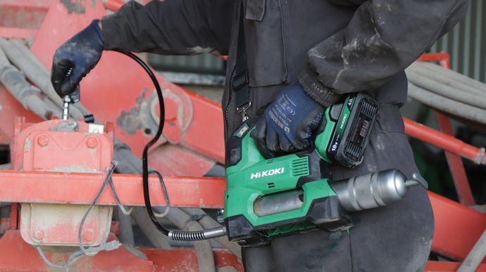 Si vous cherchez uniquement un moteur électrique qui actionne le pompage de la graisse à votre place et rien de plus, cette machine est faite pour vous. La solution proposée par Ingersoll Rand est épurée à l’extrême. Cela commence par son châssis. C’est la seule machine de ce comparatif dépourvu de patins ou de pieds, permettant de la poser correctement au sol. Le fourreau est ici totalement libre, sans structure autour. Cette pompe électrique est également l’une des moins bien protégée. Elle conserve cependant une bonne qualité de fabrication. (© P.Peeters) RéglagesAu travail, nous n’allons pas nous perdre dans les réglages, le système fonctionne avec une gâchette. C’est du On/Off, nous appuyons et ça pompe. La gâchette est l'unique bouton présent sur cette machine. (© P. Peeters) UtilisationCôté pratique, l’Ingersoll Rand propose seulement 75 cm de tuyaux. C’est le plus court de ce comparatif et c’est parfois un peu juste.La cartouche de graisse est ici positionnée dans un fourreau en métal, vissé sur le support. La purge du circuit s’effectue avec une valve à pousser. Notons que le modèle prêté était fourni avec une mallette de rangement et un point d’attache pour fixer une sangle. Paul Denis et Pierre Peeters PLUS : Machine simpleMOINS : Pas de pieds pour la poserPRIX : 149 € HT (au 01/12/2025) CHARGEUR : 75 € HTBATTERIES : 130 € HT