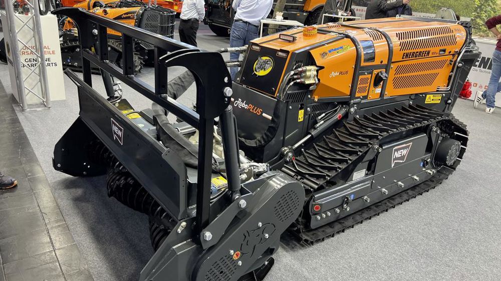 Cette machine est capable de travailler dans des pentes de 55° au maximum. Sa vitesse de travail oscille entre 0 et 4 km/h et celle de déplacement entre 0 et 7,5 km/h. Le porte-outil peut recevoir au choix des chenilles en caoutchouc ou en acier. Dans la première configuration, la machine pèse 2 700 kg et dans la seconde, 2 900 kg. La radiocommande qui vient contrôler le tout émet jusqu’à 150 m. Elle est dotée d’un joystick proportionnel et d’une batterie rechargeable.