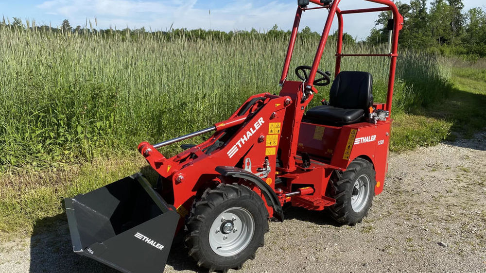 En plus de ces caractéristiques, le Thaler 1220 se veut avant tout pratique. Pour commencer, il n’y a pas de cabine mais simplement deux arceaux protection, ce qui augmente considérablement la visibilité, sans compter que monter et descendre de la machine est plus simple. Également, la machine est compatible avec la gamme d’outils de la marque, et peut ainsi utiliser les différents godets, les fourches, balayeuses, grattoirs ou encore les tondeuses.