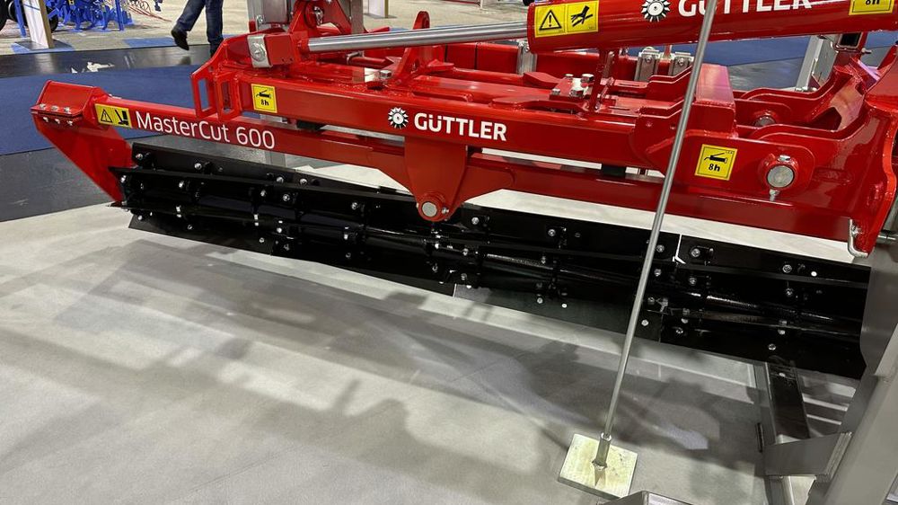 La disposition hélicoïdale des couteaux et les flasques à ressort assurent un fonctionnement silencieux. La barre niveleuse, placée très près du sol, est montée sur parallélogramme. Selon Güttler, cette configuration évite le montage d’un second rouleau à couteaux.