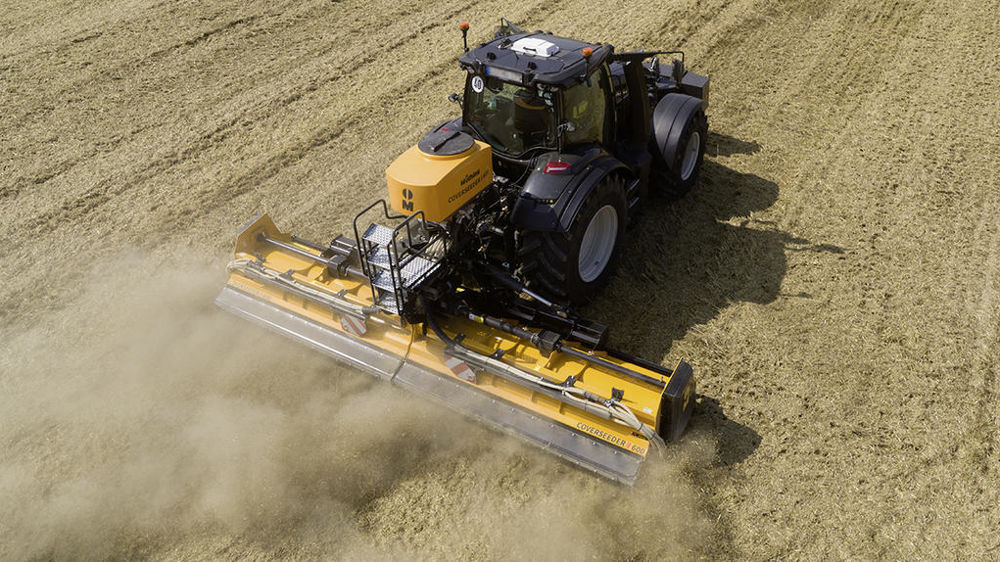 Le CoverSeeder 600 reprend le même procédé que la solution primée en 2022 par le salon allemand. Le but est d’implanter un couvert avec un broyeur à axe horizontal, en plaçant les graines sous le mulch de paille créé. Pour cela, une rampe de semis à la volée est placée juste derrière le rotor. Elle applique la semence avant que le flux ne retombe dessus. À l’arrière, un rouleau de rappui favorise le contact entre le sol et la graine.