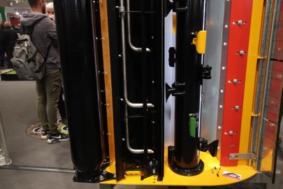 Cette version plus large embarque un boîtier de 300 ch. Elle dispose d’une trémie centrale de 500 litres, combinée à un transport pneumatique des graines. La soufflerie est animée hydrauliquement. Le dispositif comprend un escalier et une passerelle pour accéder à la trémie. Le module de trémie peut être escamoté lorsque le broyeur est uniquement utilisé pour sa fonction de base.
