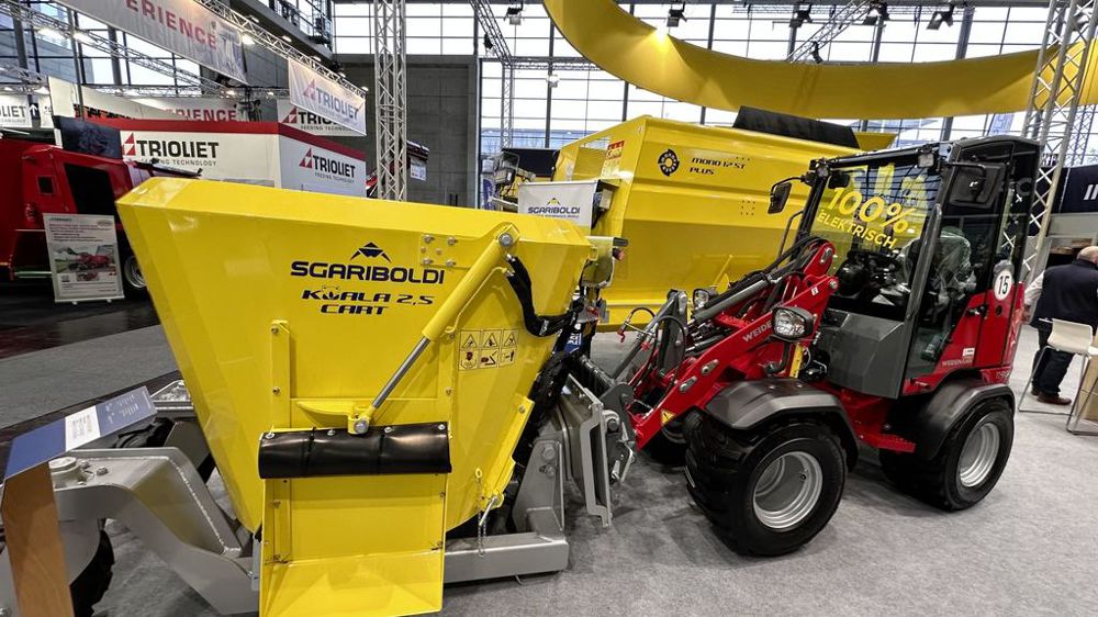Avec ses 2,5 m³ de capacité de cuve, la Koala 2.5 est la plus petite mélangeuse de la gamme Sgariboldi. Sur Eurotier, elle était présentée dans une nouvelle configuration avec un châssis porteur lui-même attelé sur le tablier d’un chargeur Weidemann électrique.