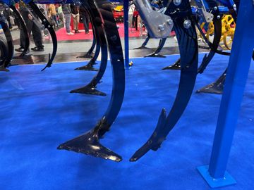 Treffler a profité d’Agritechnica 2026 pour présenter pour la première fois un scalpeur avec la particularité de recevoir un système de doubles dents. Ce dernier est installé sur la gamme DGA, mais le constructeur a ajouté 3X dans sa dénomination afin de différencier cette série de la version en simple dent. La spécificité de cet outil provient de la seconde dent placée juste derrière le soc à pattes d’oie (260 ou 300 mm de large).