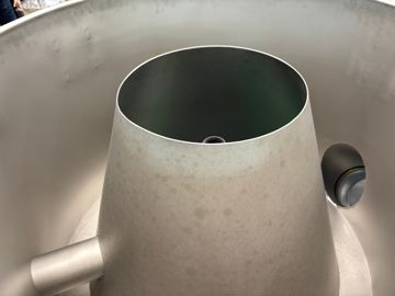 Les particules solides sont quant à elle projetées contre la paroi interne et retombent par gravité en dessous de la machine. Les corps étrangers sont eux recueillis dans un tuyau prévu à cet effet.