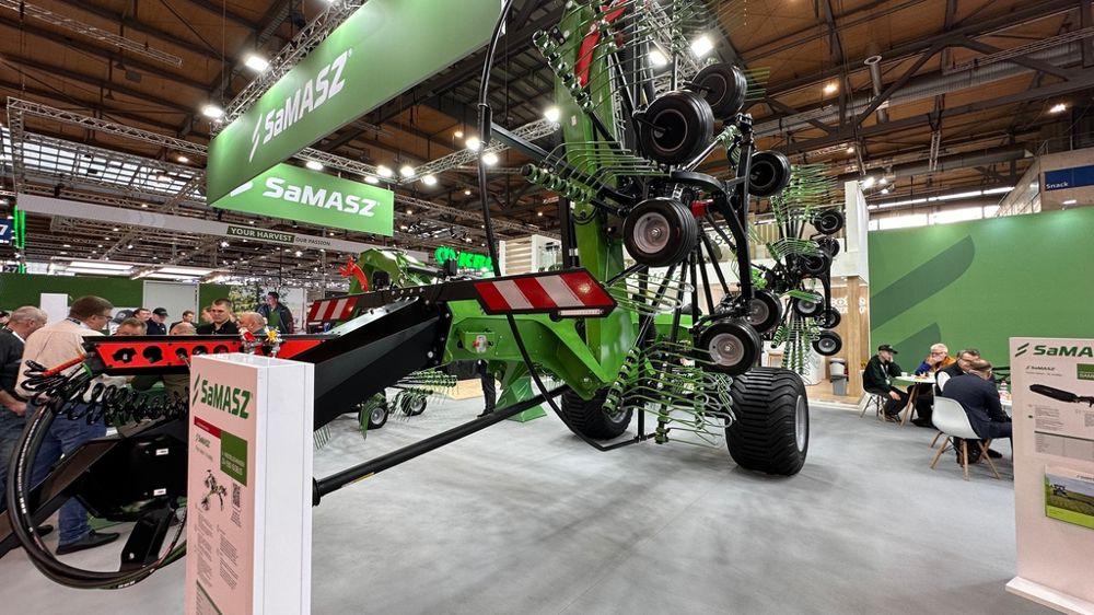 Petit à petit, Samasz s’implante sur le marché français de la fenaison. Le constructeur polonais a d’ailleurs profité d’Agritechnica pour dévoiler plusieurs machines de pré-série, dont le Z4-1550, un andaineur à quatre rotors. L’outil travaille sur une largeur de 10,50 à 15,50 m.