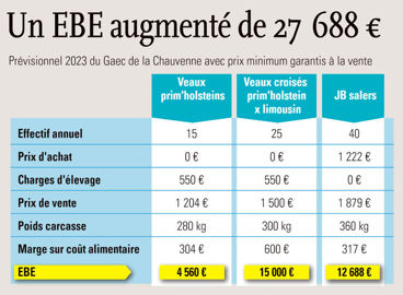 Les veaux salers achetés à la coopérative Altitude sont quant à eux rentrés le 12 avril dernier. Âgés de 11 à 12 mois, ils pesaient entre 350 et 380 kg vifs. Leur sortie est programmée pour septembre à 700 kg vifs pour des carcasses devant être comprises entre 320 et 380 kg nets, classées en R et 2 ou 3 en engraissement. Un prix minimal garanti a été fixé à 5,22 €/kg carcasse. « Nous suivons précisément le GMQ des animaux grâce à des pesées mensuelles transmises à notre coopérative », apprécie Audrey. Les veaux laitiers croisés bénéficient également d’un contrat avec un prix minimal garanti de 5 €/kg carcasse.