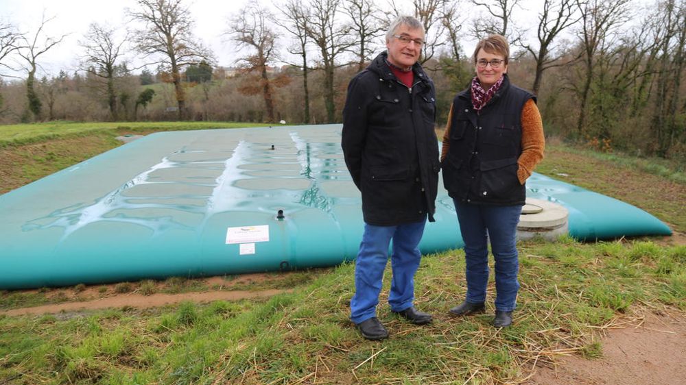 Pour limiter le coût de l’abreuvement de leur cheptel, Brigitte et Laurent Mercier, associés avec leur gendre Valentin Chimier, viennent d’installer une poche de récupération des eaux de pluie posée sur le sol. À la tête de 160 vaches charolaises (système naisseur avec broutards repoussés) et 320 brebis charollaises et vendéennes à Reterre, dans la Creuse, cette solution s’est imposée car ils n’ont pas la possibilité de puiser de l’eau.