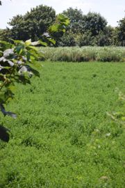 Dans un cinquième temps, l’aménagement de la biodiversité a conduit à l’implantation de plus de deux kilomètres de haies en 2021. Près d’un hectare a été affecté à des bandes fleuries dans les zones les moins productives ou accessibles. Le long de la rivière traversant l’exploitation, 4,8 ha de miscanthus ont été implantés. Ils seront valorisés comme combustible par l’UCDV. Par ailleurs, neuf ruches sont présentes cette année à proximité de la luzerne dans le cadre d’une prestation de Bto’Bees (société de service de ruches en entreprise).