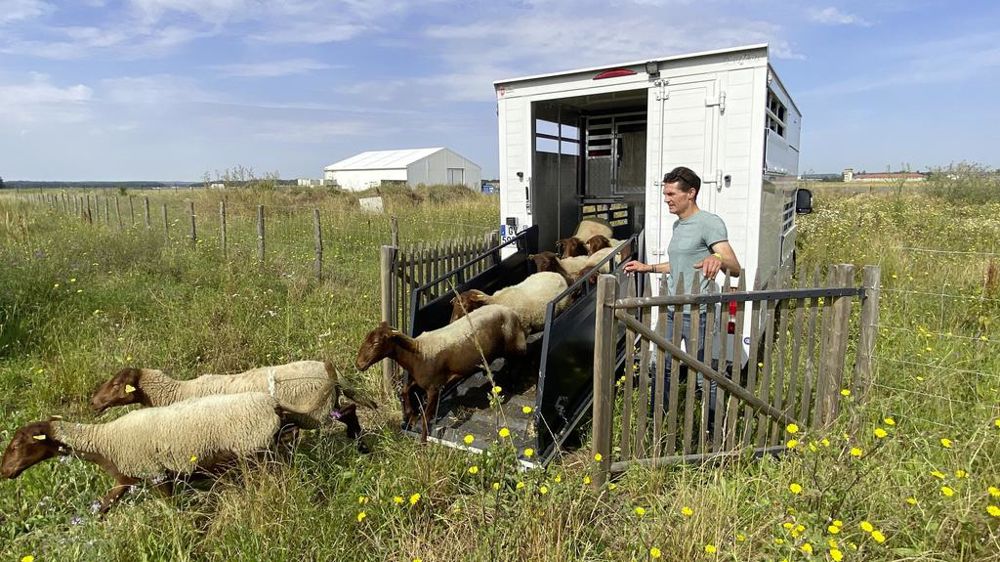 Sur l’ancienne base aérienne 217 de Brétigny-sur-Orge, détenue par l’intercommunalité Cœur d’Essonne Agglomération, 13 brebis solognotes arrivent dans un parc d’1,5 ha. « C’est un lot dédié à la sélection », précise le berger sans terre Sylvain Fabiani qui élève 300 têtes. Sept autres brebis pâturent un deuxième parc d’un hectare. Les deux lots tournent sur trois parcs (5,5 ha au total) d’avril à décembre. Tous ses animaux sont répartis à travers l’Île-de-France sur près d’une cinquantaine de sites appartenant à des sociétés privées (via un partenariat avec des entreprises du paysage notamment) ou des collectivités (en répondant à des commandes publiques).