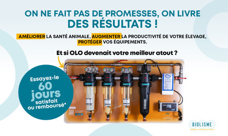 « On ne fait pas de promesses, on livre des résultats, avance Biolisme. Notre système Odaly s’accompagne d’ailleurs d’une offre satisfait ou remboursé ! » Odaly est la solution idéale pour purifier l’eau sur votre exploitation. La dynamisation restaure les propriétés naturelles de l’eau. Son système de microfiltration réduit drastiquement les niveaux de chlore et de calcaire, piège les polluants et neutralise les agents pathogènes.