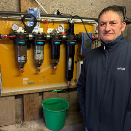 Arnaud Alleaume (bovins lait, Ille-et-Vilaine) a, lui, constaté + 6 % de lait, + 6,5 % de MG et + 2,5 % de protéines ainsi qu’une baisse des cellules de 350 000 à 250 000/ml, huit mois seulement après l’installation d’Odaly sur le puits artésien. « Les branchements sont simples, j’ai tout posé seul, ajoute l’éleveur. Nous avons rapidement observé que les vaches buvaient davantage. D’ailleurs, elles ne lapent plus, elles boivent franchement ; pour moi c’est le signe que l’eau filtrée est plus appétente. »