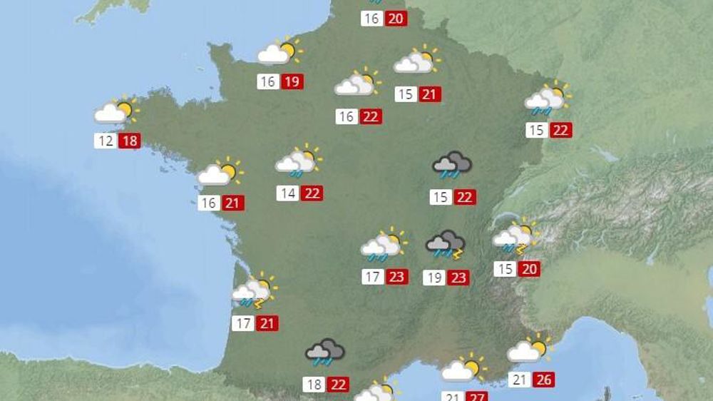 Dans la nuit, tandis qu’au nord, un front faiblement pluvieux traversera les régions de la Bretagne aux Hauts-de-France, les orages au sud vont se décaler de l’Occitanie au Massif central et au Limousin.