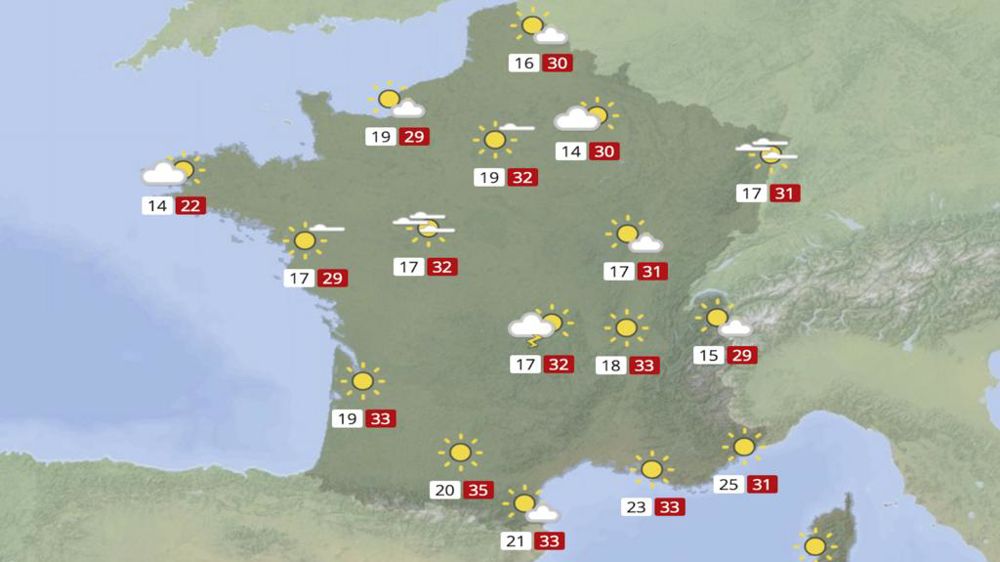 Vendredi, de 27 à 32°C sont par exemple attendus dans l’intérieur des terres bretonnes, normandes et des Hauts-de-France, de 30 à 33°C en Île-de-France et de 32 à 35°C sur le Berry, la Touraine et le Poitou. « Mais c’est dans le Sud-Est que la chaleur la plus forte est prévue, avec souvent 38 à 40°C dans le Gard, le Vaucluse, ainsi que l’intérieur des Bouches-du-Rhône et du Var », précise Météo-France.