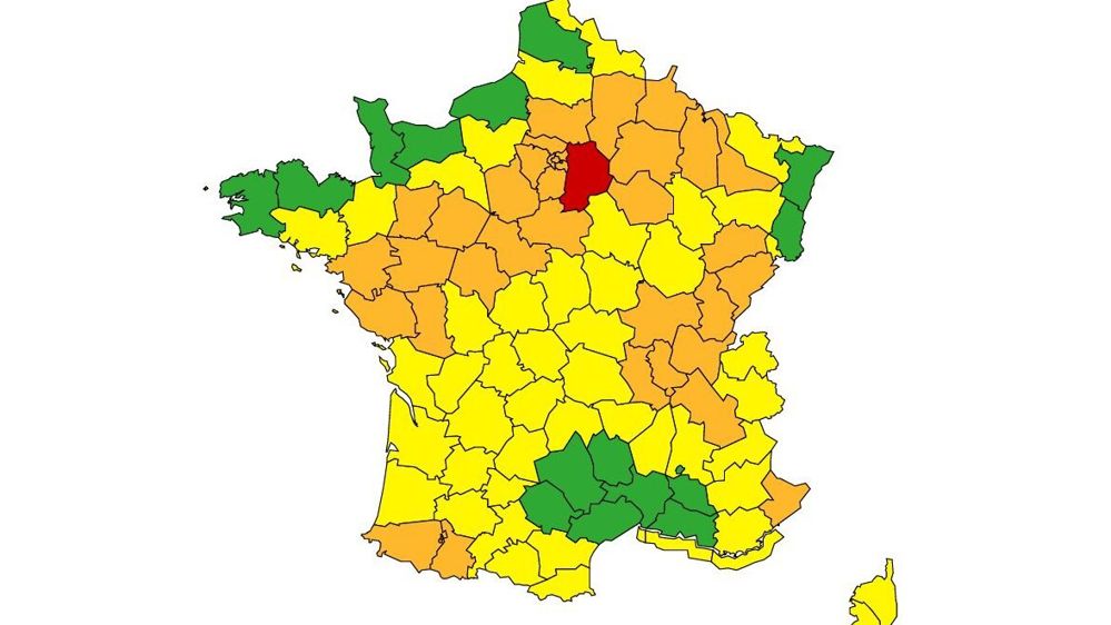 Sont ainsi concernés par une vigilance orange pluie-inondation une grande partie des départements situés sur l’axe des Pays de la Loire aux Ardennes, soit : Aisne, Alpes-Maritimes, Ardennes, Aube, Deux-Sèvres, Essonne, Eure-et-Loir, Hauts-de-Seine, Indre-et-Loire, Loir-et-Cher, Loiret, Loire-Atlantique, Maine-et-Loire, Marne, Mayenne, Meuse, Oise, Paris, Sarthe, Seine-et-Marne, Seine-Saint-Denis, Val-de-Marne, Val-d’Oise, Vendée, Yvelines.