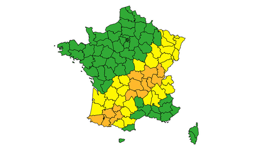 Météo France annonce des orages forts après-midi et en soirée, dans le Centre-Est. Des chutes de grêle, des rafales de vent voisines de 80 à 100 km/h, d’intenses précipitations de l’ordre de 20 à 40 mm en peu de temps et d’un foudroiement important, sont possibles.